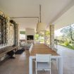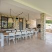 Im Erdgeschoss finden Sie eine voll ausgestattete Küche und eine überdachte Terrasse mit einem großen Esstisch für 10 Personen im Freien, die sich dank des vorhandenen BBQ-Grills und der Außenküche perfekt für gesellige Abendessen im Freien eignet.