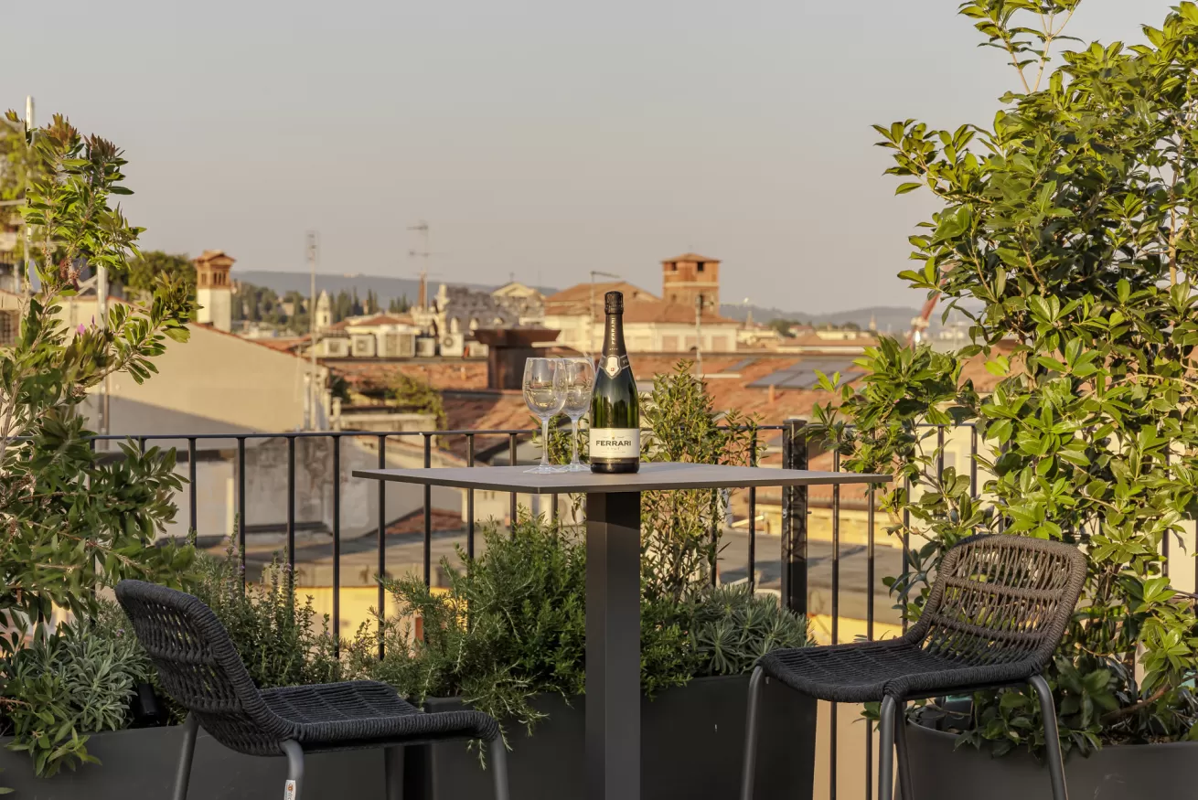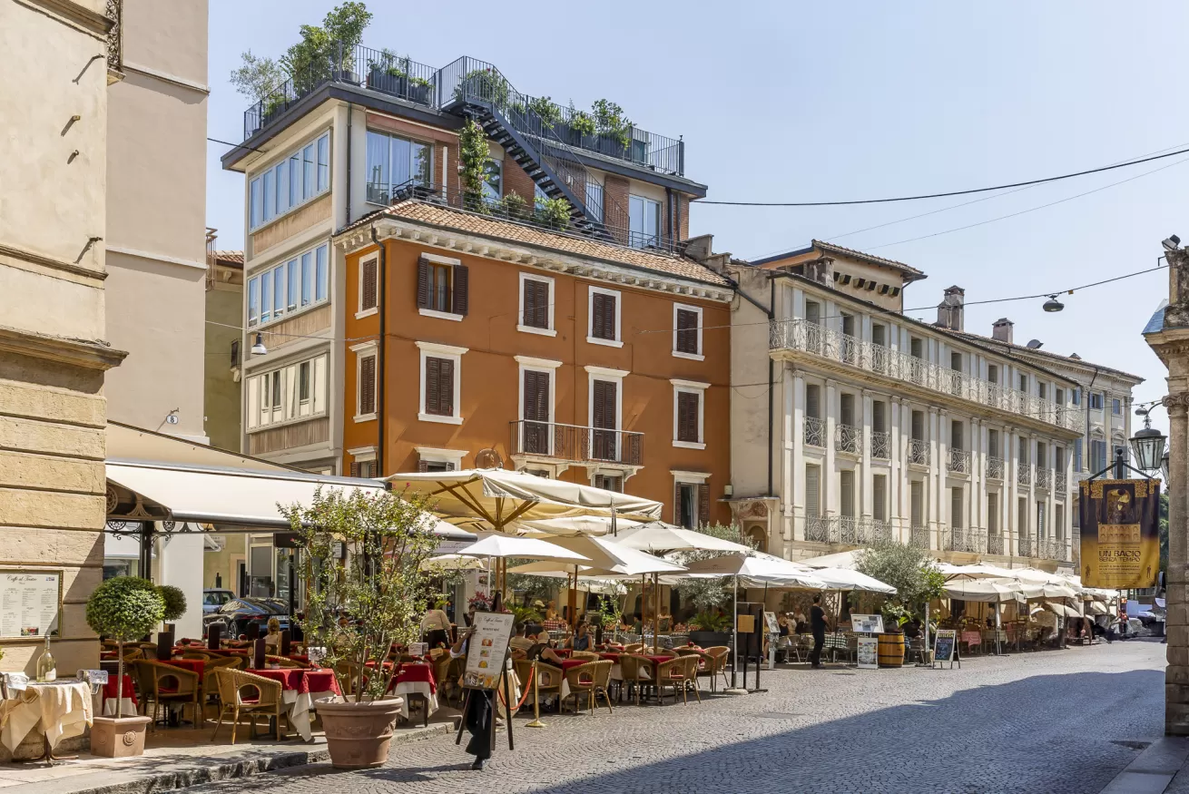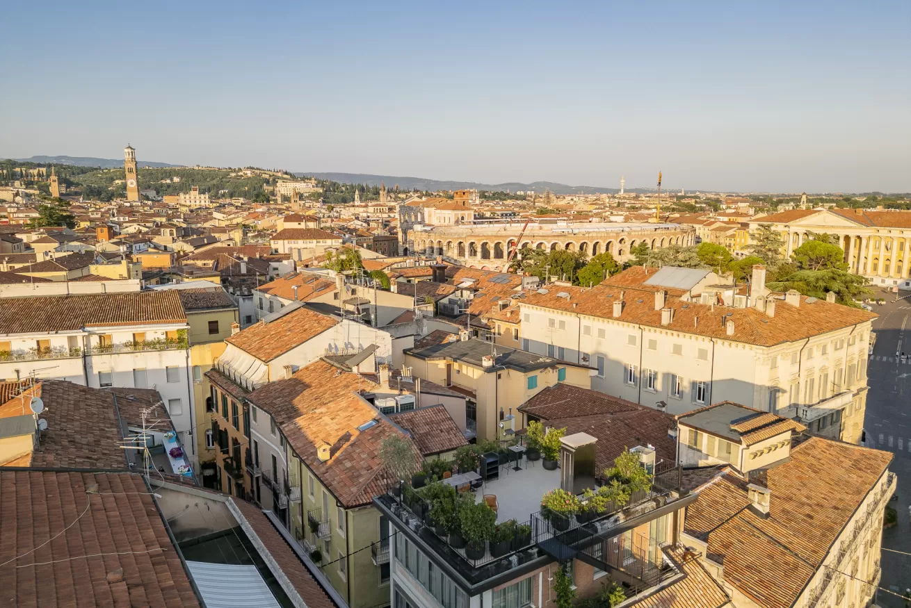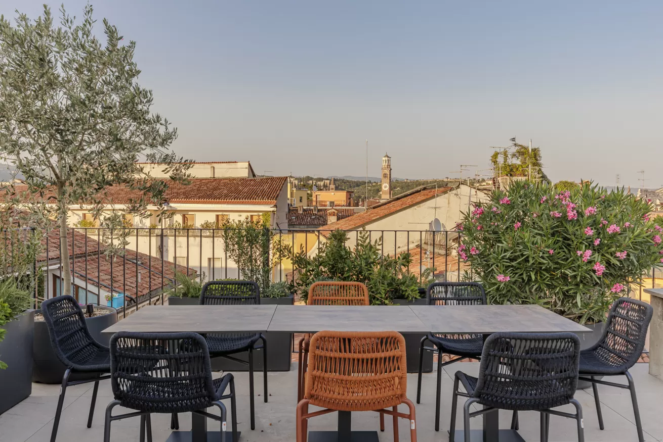 Scegliere di soggiornare a Palazzo Cignaroli è un'esperienza culturale profonda, un invito a vivere Verona da una prospettiva privilegiata che si estende fino alla sommità del palazzo, dove vi attende, raggiungibile con un comodo ascensore, una splendida rooftop terrace con una confortevole area lounge. Da qui potrete abbandonarvi alla contemplazione della bellezza di Verona, con una vista impareggiabile che spazia sull'imponente Palazzo della Gran Guardia, sul Teatro Filarmonico, fino a cogliere uno scorcio della maestosa Ala di cinta della vicina Arena di Verona. Inoltre, la vista della Torre dei Lamberti, del Santuario Madonna di Lourdes, delle colline e dei monti che circondano la città completano questo angolo di paradiso, donandovi indimenticabili momenti di relax per brindare alla magia della città stessa.